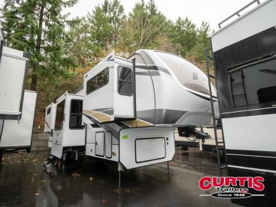 Sleeps 6 Slides 5 Length 41 ft 4 in Ext Width 8 ft 5 in Ext Height 13 ft 6 in Exterior Color Standard Paint/Graphics. Optional Full-Body Paint; Gold, Black Hitch Weight 2957 lbs GVWR 19000 lbs Dry Weight 15487 lbs Fresh Water Capacity 98 gals Grey Water Capacity 106 gals Black Water Capacity 53 gals Tire Size 16" Furnace BTU 40000 btu Available Beds King Refrigerator Type 12 Volt Residential Refrigerator Size 19 cu ft Cooktop Burners 4 Shower Size 48" x 30" Number of Awnings 2 Axle Weight 7000 lbs LP Tank Capacity 60 lbs Water Heater Capacity 12 gal Water Heater Type Gas/Electric AC BTU 40500 btu TV Info LR 55" Smart HDTV, BR Smart HDTV Awning Info Friction-Hinge Adjustable Solera with Manual Override and LED Lights Axle Count 2 Washer/Dryer Available Yes Shower Type Standard Electrical Service 50 amp Similar Fifth Wheel Floorplans