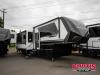 Unmatched luxury, an automotive exterior, tons of storage space, and intelligent features; it has to be a Model G toy hauler fifth wheel by Brinkley!