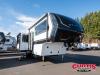 Sleeps 4 Slides 3 Length 34 ft 11 in Ext Width 8 ft Ext Height 13 ft 3 in Exterior Color Silver, White or Gold Full Body Paint Hitch Weight 2298 lbs GVWR 15495 lbs Dry Weight 12276 lbs Fresh Water Capacity 75 gals Grey Water Capacity 90 gals Black Water Capacity 45 gals Tire Size 215/75 R17.5 Furnace BTU 35000 btu Available Beds King Refrigerator Type 12V Refrigerator Size 16 cu ft Cooktop Burners 3 Shower Size 30" x 42" Number of Awnings 2 Axle Weight 7000 lbs LP Tank Capacity 30 lbs Water Heater Type Tankless On Demand AC BTU 31500 btu TV Info LR 50" Smart Telescoping TV, BR 32" Smart TV Awning Info 11' & 15' Electric w/Neon COB/Dotless LED Lighting Axle Count 2 Washer/Dryer Available Yes Number of LP Tanks 2 Shower Type Standard Solar Wattage 370 watts Similar Floorplans