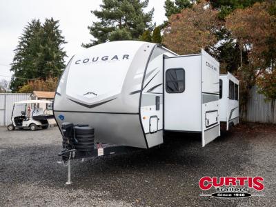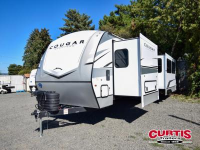 The Keystone Cougar Half-Ton fifth wheel and travel trailers are known as one of America's favorites for a reason! Some of those reasons are the exclusive features that come from Keystone, like the Winegard Air 360+ omni-directional rooftop antenna, the in-floor heating ducts, and the HyperCore composite wall construction with Vixen Fibrogloss high-gloss finish. The Cougar Half-Ton has a Climate Guard protection package with heat-deflecting white sidewalls, two roof attic vents, PEX plumbing and more to enjoy four season camping. Inside, you'll love the dimmable lighting, night roller shades throughout, shower skylight, and bedside USB outlets to keep your electronics charged.