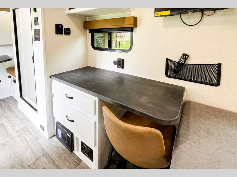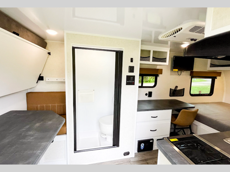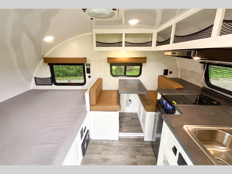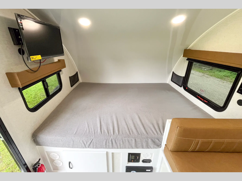 Each model is constructed with a custom steel frame and Azdel walls for added durability. Their compact size and torsion axle suspension make them easy to tow, plus they are off-road and off-grid ready! You'll love the cozy interiors that will make you feel at home, and there are plenty of storage spaces for personal belongings, gear and more!