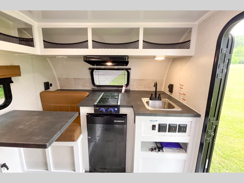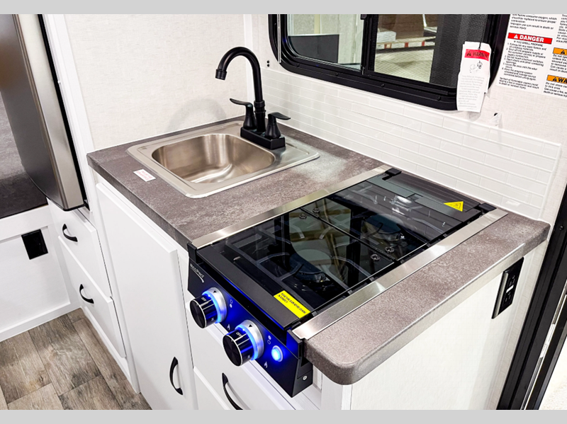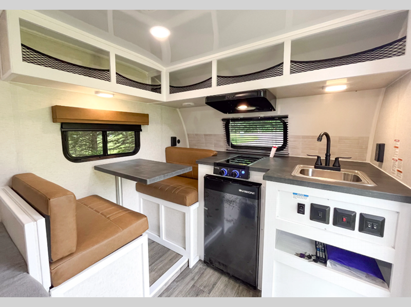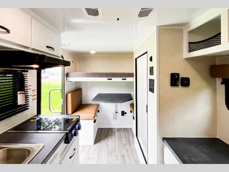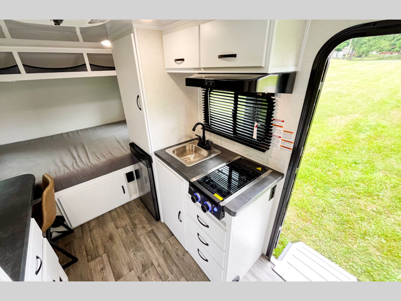 Sleeps 3 Length 14 ft 8 in Dry Weight 2198 lbs Tire Size ST235/75R15 Refrigerator Type Large Cooktop Burners 2 Axle Weight 3500 lbs Water Heater Type Fogatti On Demand Axle Count 1 Shower Type N/A -