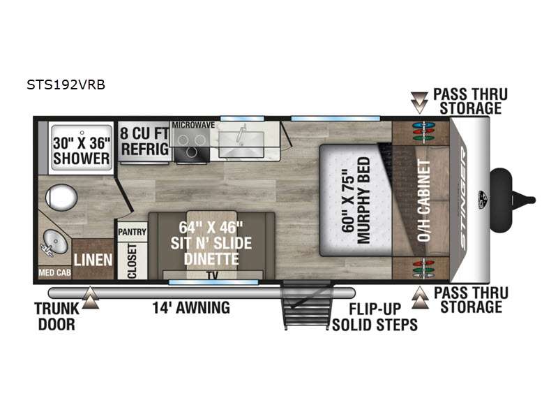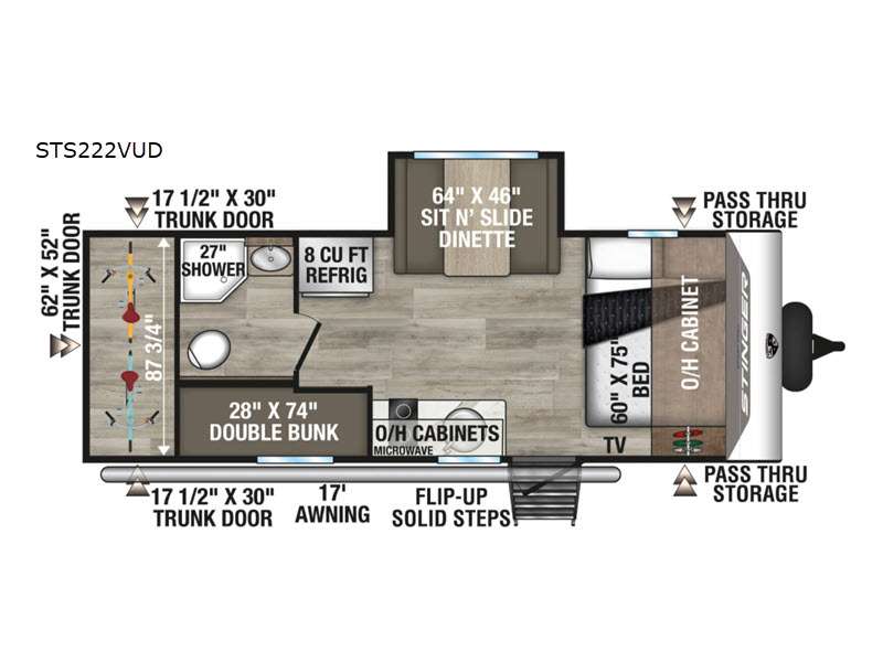 Venture RV SportTrek Stinger travel trailer STS192VRB highlights: Trunk Door 17' ... more about SportTrek Stinger STS222VUD