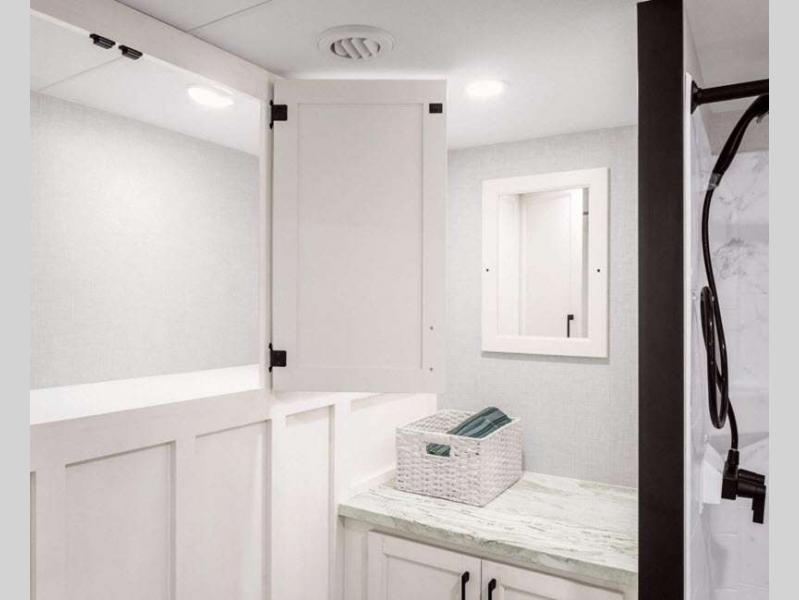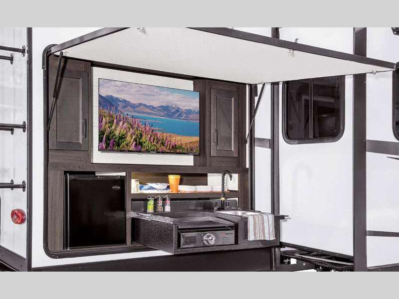 Both the Travel Trailer and Fifth Wheel deliver the same Venture RV quality and comfort. Built with Azdel laminated sidewalls, an NXG Huck bolt frame, and the Weather Shield Package, they’re designed to come with you on your adventures when you want to get away! Inside, enjoy a modern farmhouse design with hand glazed cabinets, Beauflor flooring, and a Serta memory foam mattress. Entertainment and convenience are no issue with a Smart TV with sing arm, JBL sound bar and flip Bluetooth speaker, WiFi prep, and a 200W solar panel. Outside, features like LED power awnings, slam-latch baggage doors with magnetic catches, and a friction-hinge entry door make every trip effortless and enjoyable.