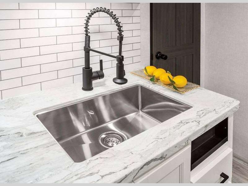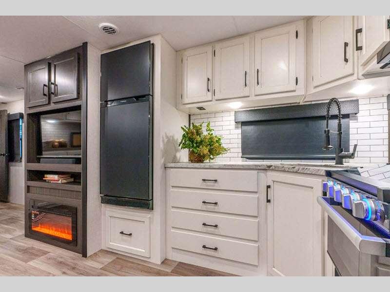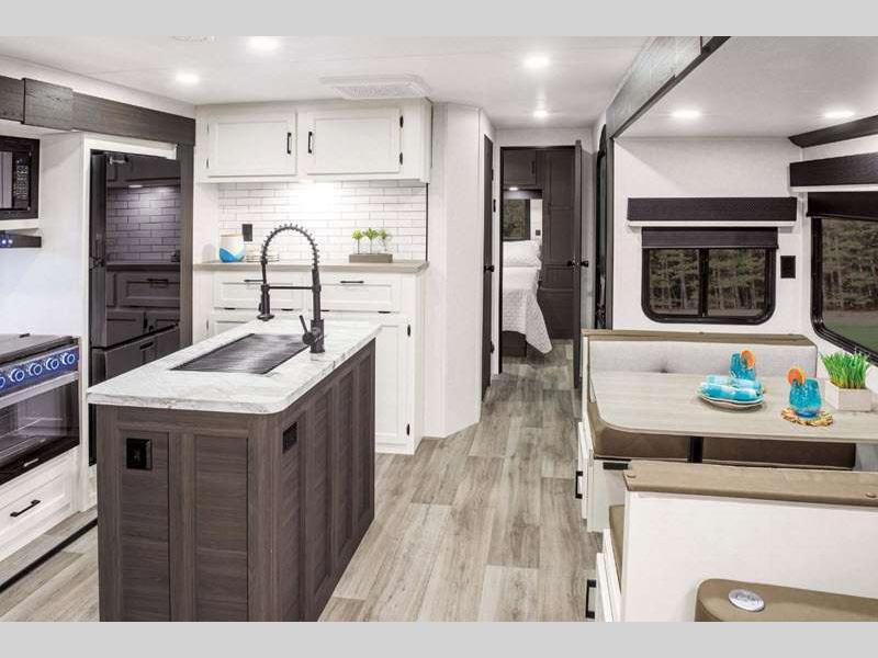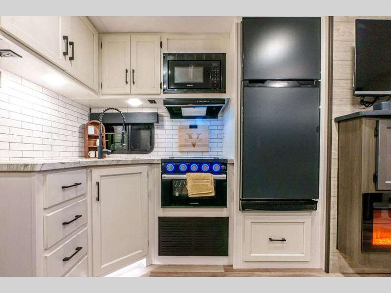 The lightweight Venture RV SportTrek travel trailers and fifth wheels are user-inspired with a purposeful residential kitchen and many storage opportunities!