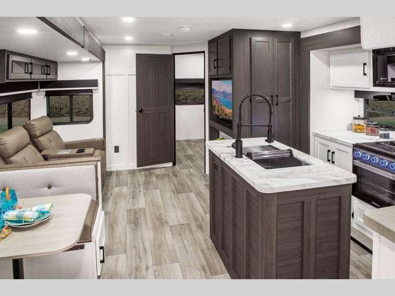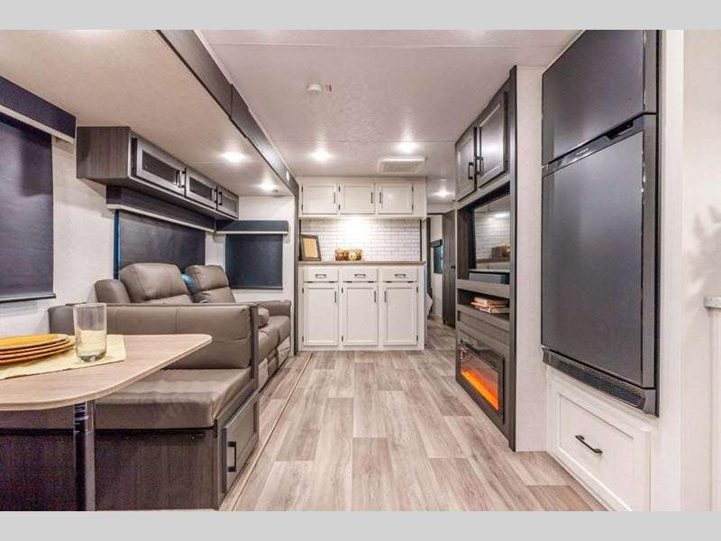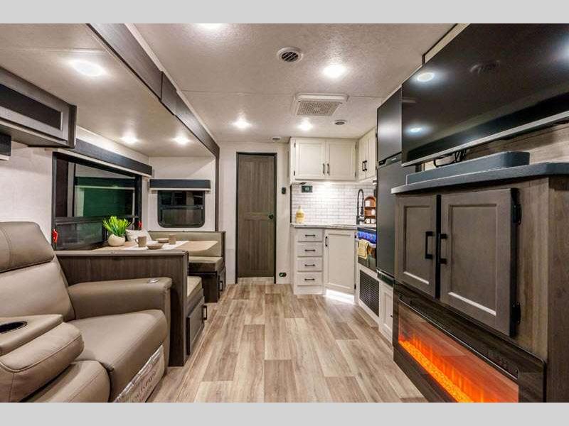 Sleeps 4 Slides 1 Length 30 ft 11 in Interior Color Chestnut, Fawn, Sufside Maple, Teak Hitch Weight 860 lbs GVWR 9260 lbs Dry Weight 6770 lbs Cargo Capacity 2490 lbs Fresh Water Capacity 45 gals Grey Water Capacity 64 gals Black Water Capacity 32 gals Tire Size 15" Available Beds Queen Refrigerator Type 12V Refrigerator Size 10 cu ft Cooktop Burners 3 Shower Size 30" x 36" Number of Awnings 1 Axle Weight 5910 lbs LP Tank Capacity 30 lbs Water Heater Type Tankless on demand TV Info LR 40" TV w/ swing arm, Ext. 40" Smart TV w/ swing arm Awning Info 14' LED Power Axle Count 2 Washer/Dryer Available Yes Number of LP Tanks 2 Shower Type Standard Electrical Service 50 amp Solar Wattage 200 watts Similar Floorplans