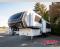 You're going to love every minute spent in this spacious fifth wheel that can sleep four. There is an inviting rear living area with a 72" tri-fold sofa and theater seating across from the televator and fireplace. The chef of your group can whip up dinner on the three burner cooktop or in the 30" residential microwave, and there is a 16 cu. ft. refrigerator that even opens when with the slide out is in. You will also enjoy the kitchen island with a farmhouse sink and roller cover, dual trash bins with a Stow N' Go paper towel holder, plus convenient dog bowls for your furry friends. You can store all your paper goods and snacks in the 84" pantry with adjustable shelving, and there is a hutch for nice dishes plus shoe storage in this model as well. Head to the front master bedroom where you'll find a queen bed with a TV, a large slide out with a wardrobe with drawers, plus a spacious bath.