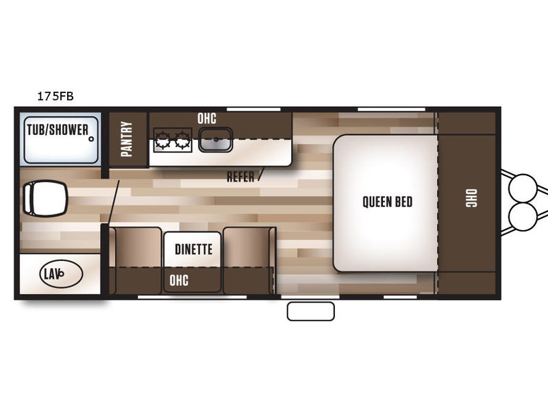 As you enter model 175FB you will see a front queen bed to your immediate right along with a large overhead cabinet above the bed for your things.