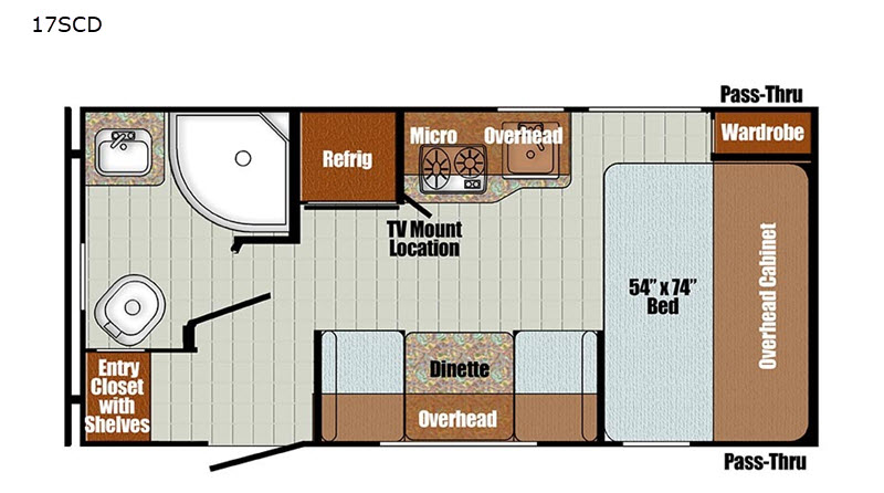 - Bed with 60" x 74" Mattress (N/A 17RWD)