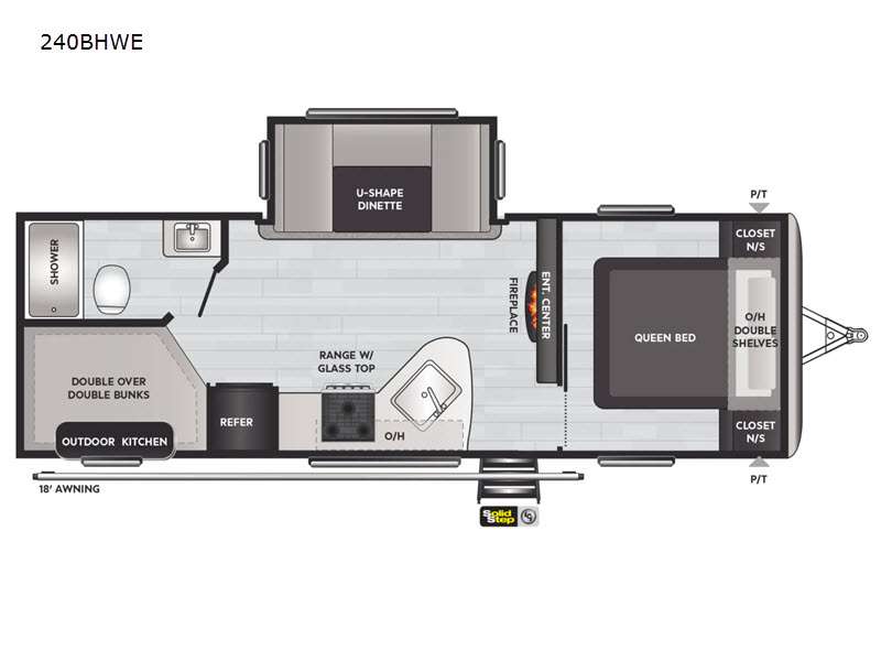 You will love traveling with this Springdale in tow with your family and friends! There is a private front bedroom with a queen bed and storage, a U-shaped dinette slide for eating meals at and sleeping at night, as well as a set of double-size bunks giving you sleeping space for eight. Outside, you can make meals using the outdoor kitchen, relax under the 18' power awning, and store your camping gear in the pass-through compartment. If you need a little bit more help to create dinner, you can head back inside where you will find a three-burner range with glass top in the full interior kitchen.